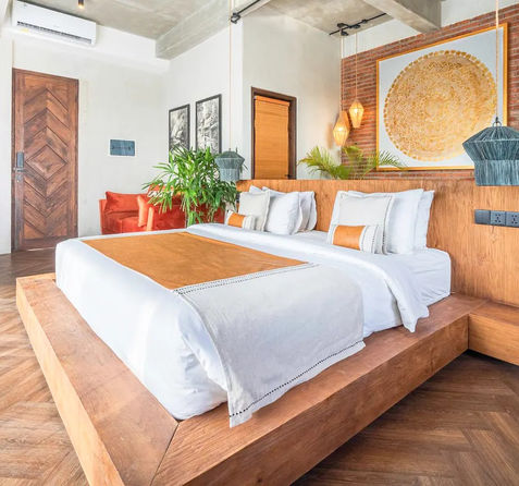 Immerse yourself in the villa's carefully curated ambiance, adorned with teak furniture, captivating tribal art, enchanting rattan pendant lights, and lush greenery that breathes life into every corner. You'll find 3 fully decorated bedrooms with ensuite bathrooms on the ground floor overlooking the lush garden and expansive 4x10m pool. Each room is spacious, comes with a writing desk, and wardrobe.
